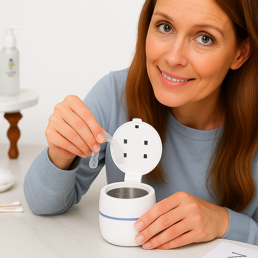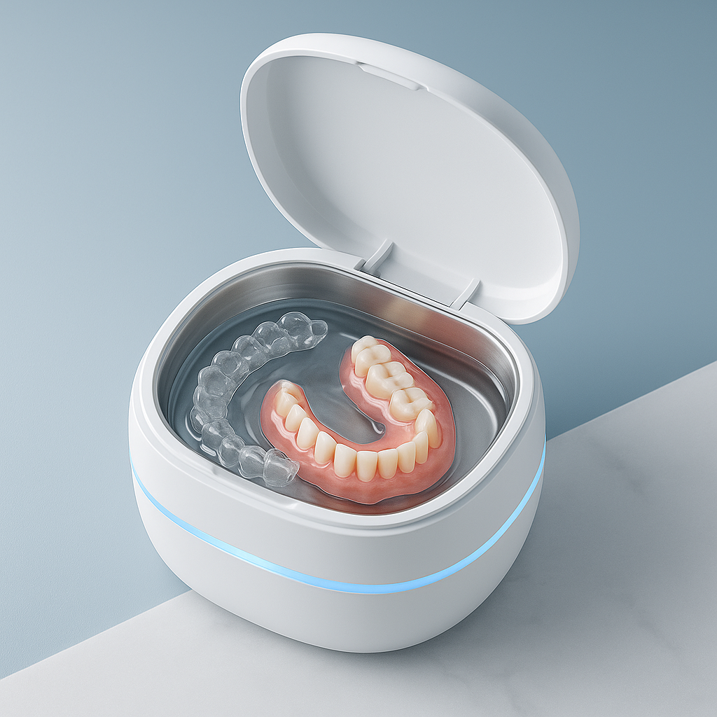 Denta™ jest chwalona przez specjalistów od higieny jamy ustnej za idealne połączenie dokładnego czyszczenia, bezpieczeństwa materiałów i łatwości użytkowania. Opracowana na podstawie wniosków klinicznych, skutecznie usuwa resztki płytki i bakterii z alignerów, aparatów, protez i szyn nocnych bez ostrych szczotek czy drażniących substancji chemicznych. Przestronny zbiornik ze stali nierdzewnej i zaawansowane przetworniki piezoelektryczne gwarantują redukcję mikroorganizmów na poziomie 99,9%, a automatyczne wyłączanie przy niskim poziomie wody lub przegrzaniu zapewnia pełne bezpieczeństwo.