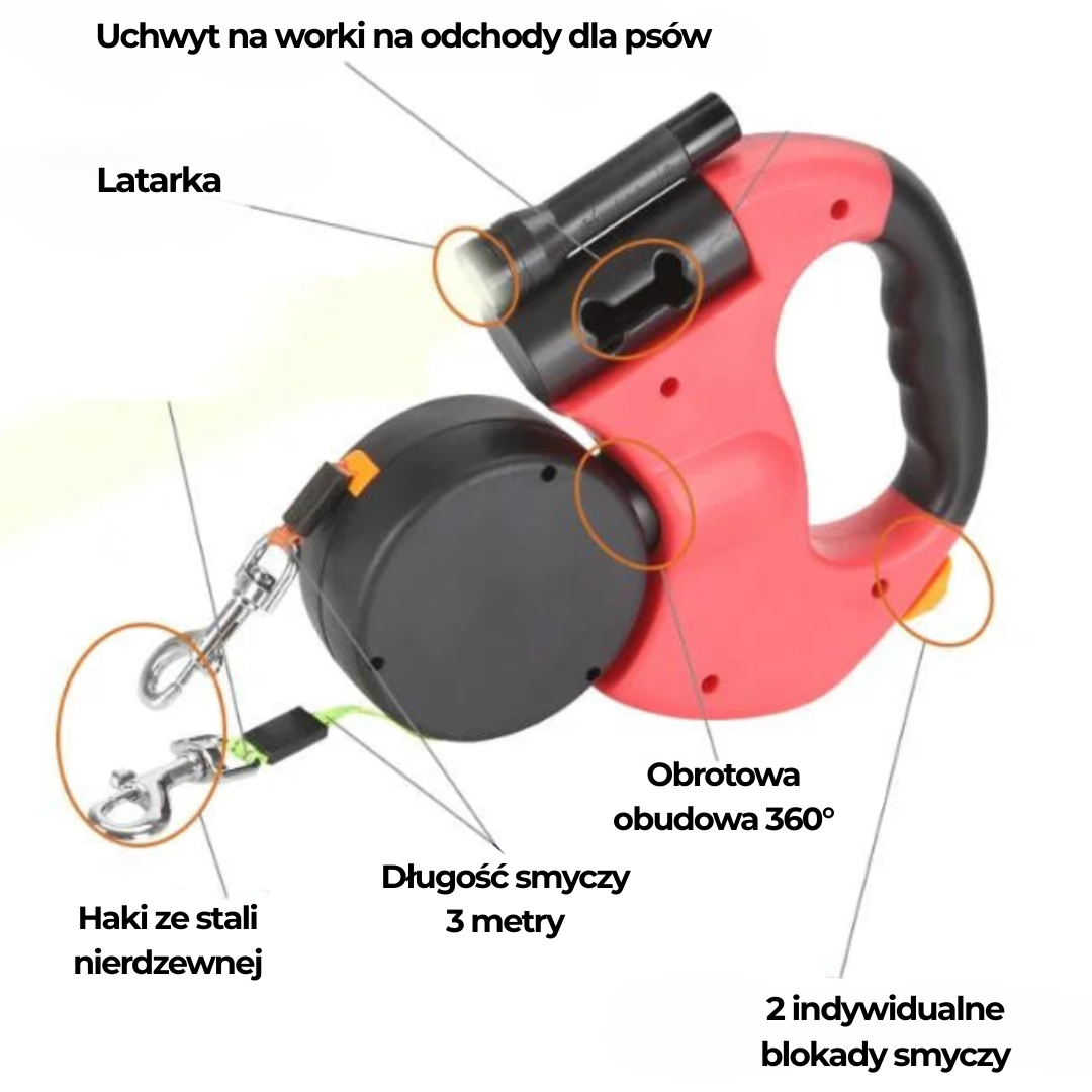 🎢 Automatyczne zwijanie – Zwolnij przycisk, by smycze płynnie się zwijały