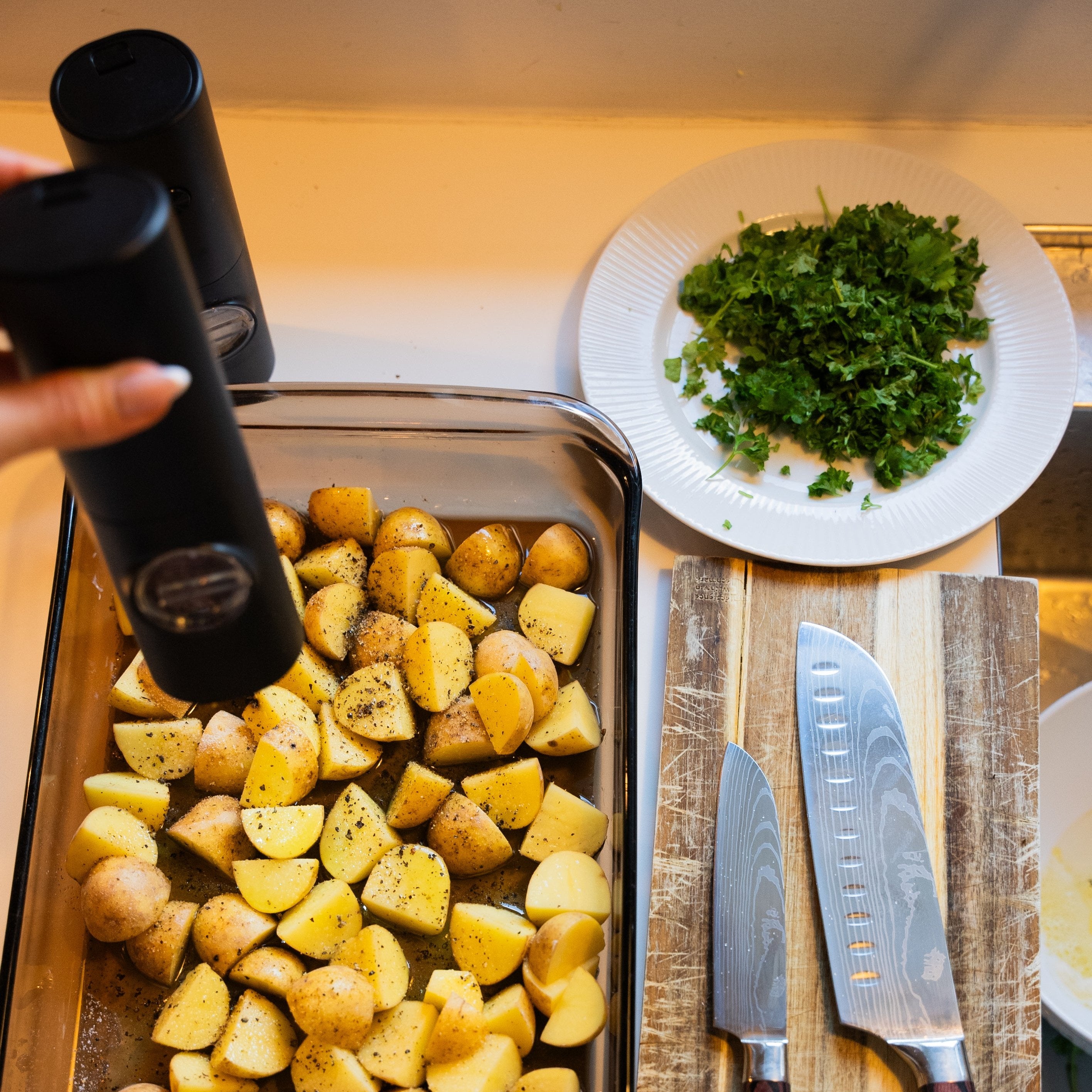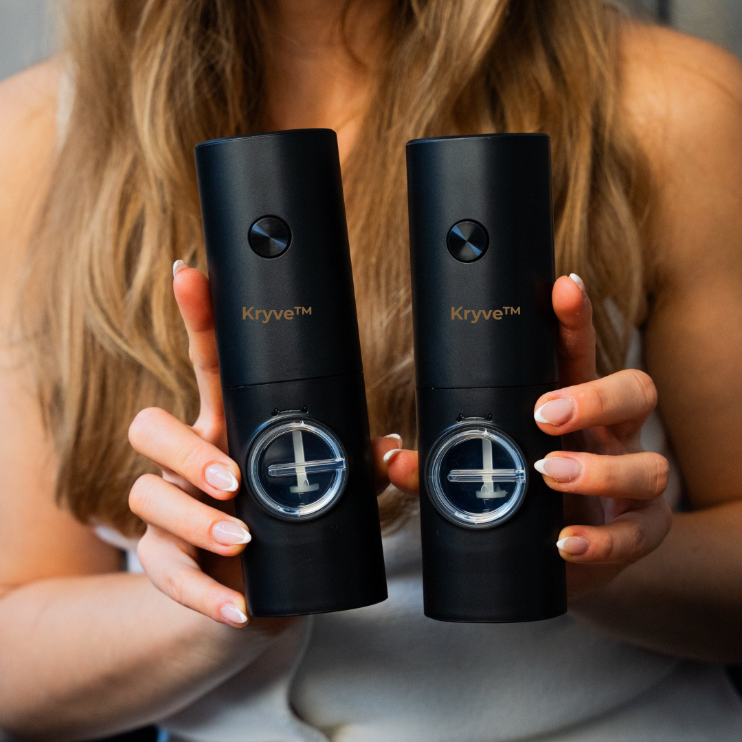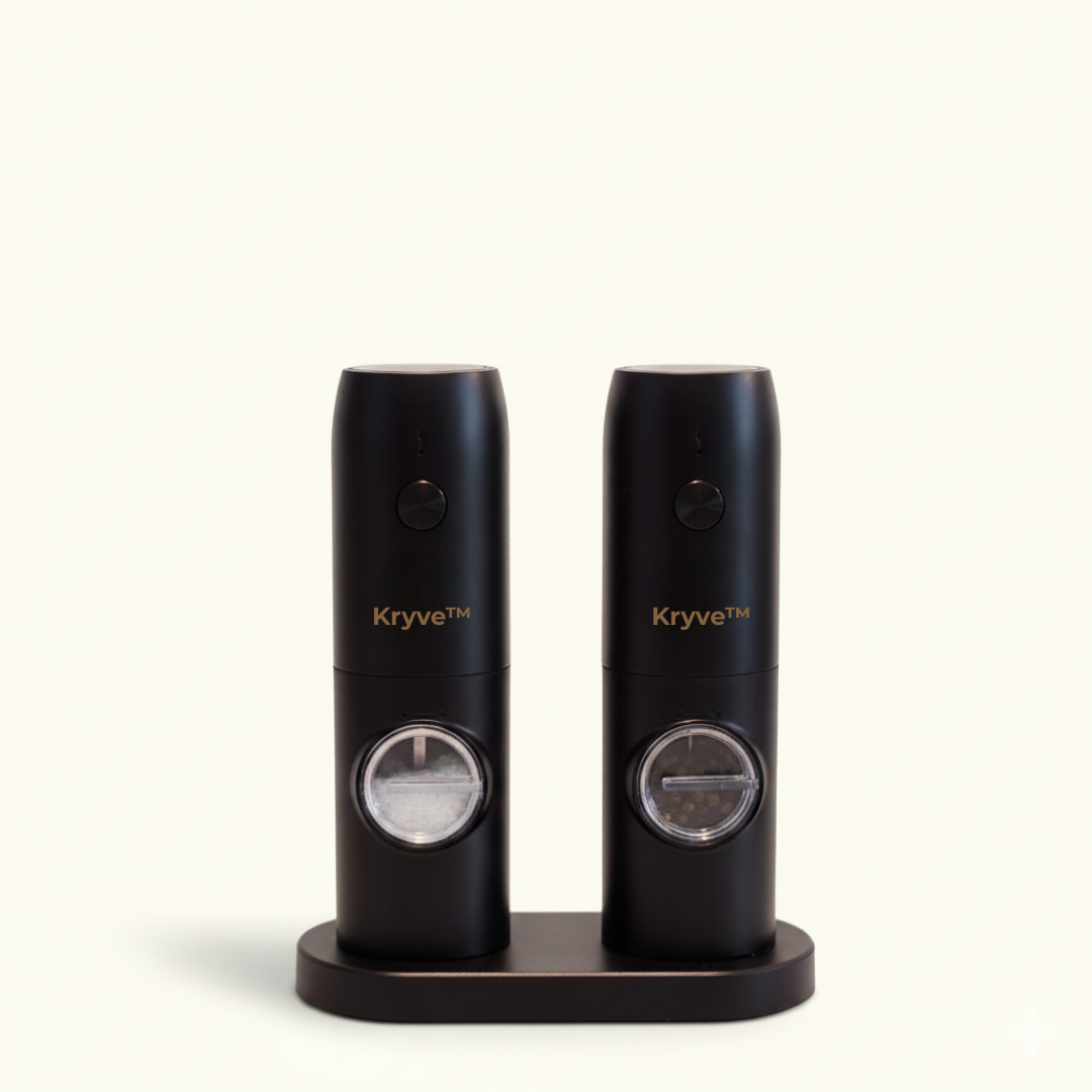 Zamów swój elektryczny zestaw młynków do soli i pieprzu Kryve™ już teraz i odkryj, jak łatwo jest przyprawiać jak profesjonalista.