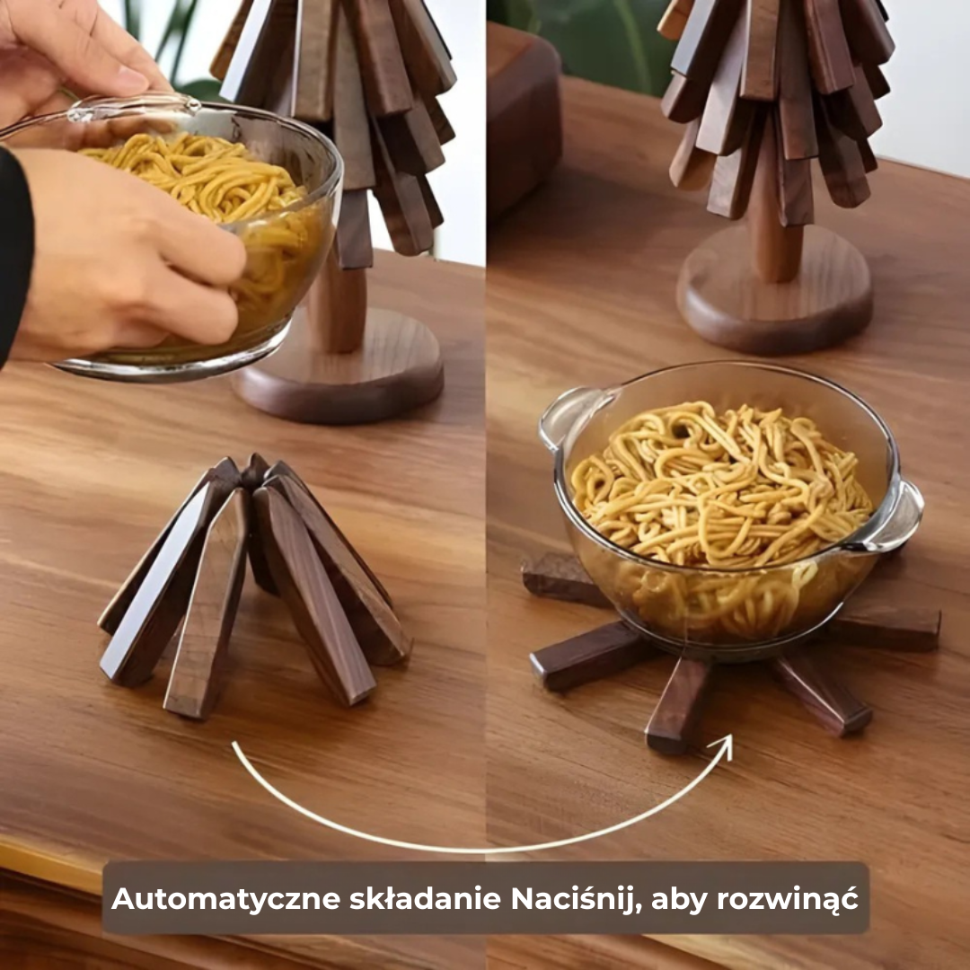 🌳 Składana i oszczędzająca miejsce – Pomysłowy, drzewkowaty kształt rozkłada się dla większych naczyń i składa na płasko w kilka sekund. Oszczędzaj miejsce w szufladzie, mając jednocześnie stylowy element pod ręką.