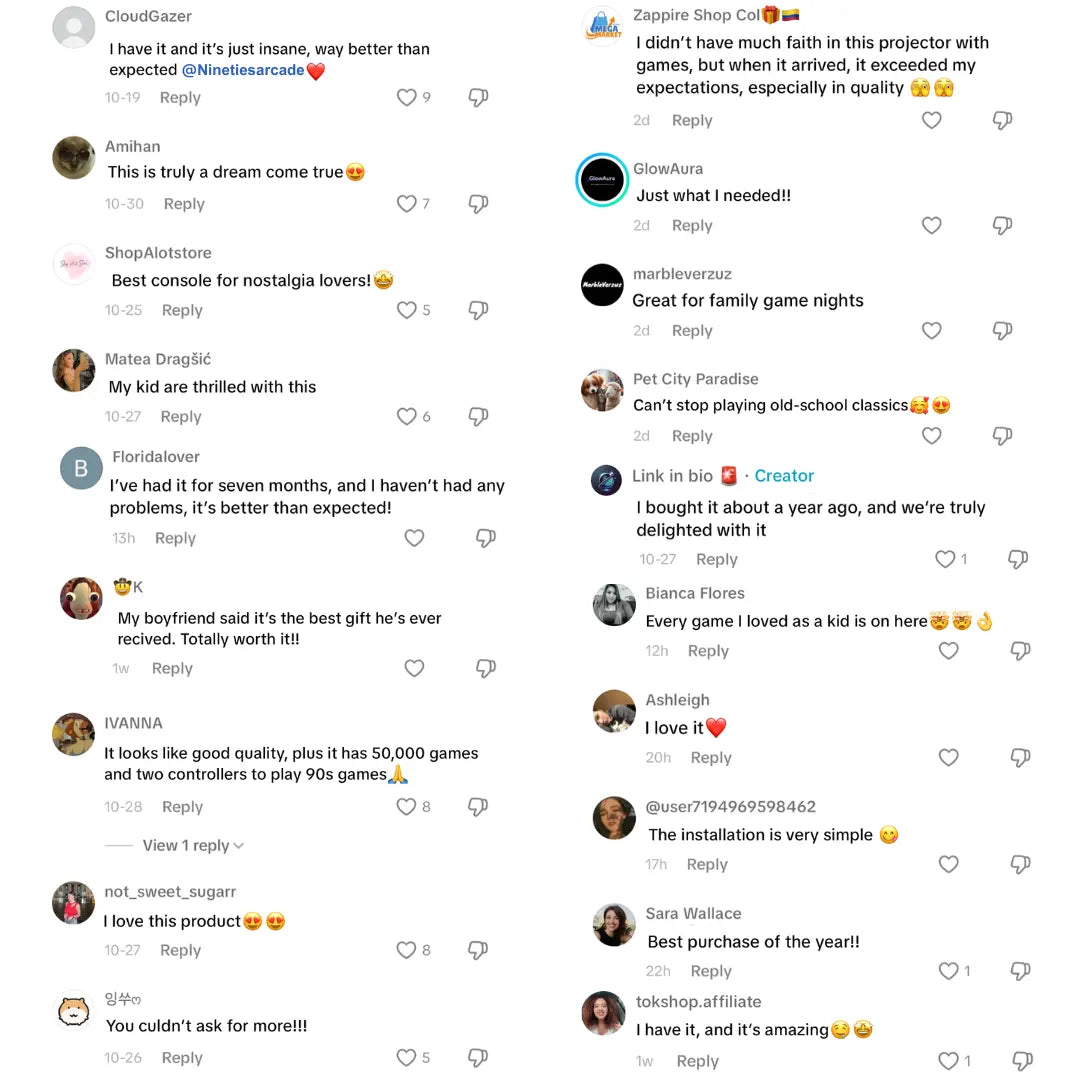 Zmień dowolny telewizor w swoją osobistą konsolę do gier retro. Ciesz się płynną rozgrywką dzięki dołączonym bezprzewodowym kontrolerom, zapisuj swoje postępy w dowolnym momencie i ciesz się spokojem dzięki naszej 90-dniowej gwarancji. Zaufały nam tysiące entuzjastów gier retro na całym świecie.